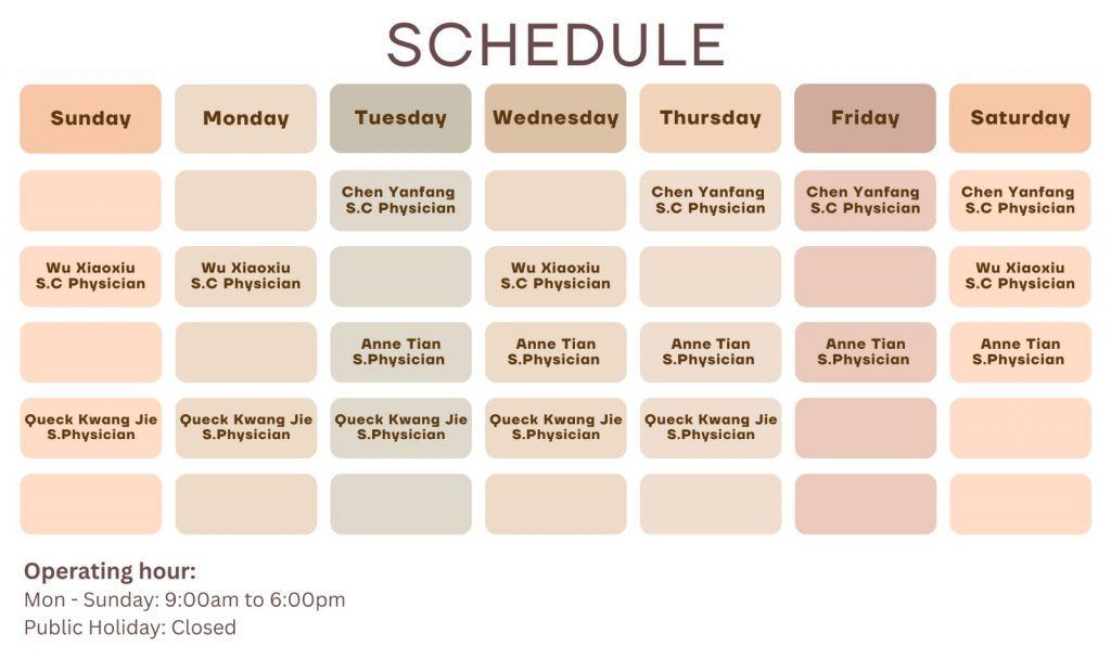As the Best TCM Clinic in Singapore, we accept both appointment and walk-in patients. However, we advise all patients to call us at 6327 7866 to check for physicians’ availability and arrange an appointment time so as to reduce your waiting time and avoid disappointment in the event if your regular physician is on urgent leave. For Saturday appointments, do call at least a week in advance for your preferred timing at our TCM Novena clinic.